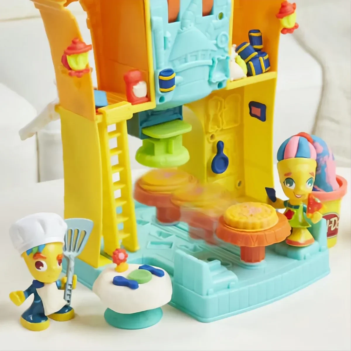 Les habitants de Play-Doh Town pourront d'abord s'arrêter au garage pour voir le mécanicien et mettre un peu d'essence. Puis, ils se rendront au restaurant pour le déjeuner, ou juste pour prendre un dessert Play-Doh.