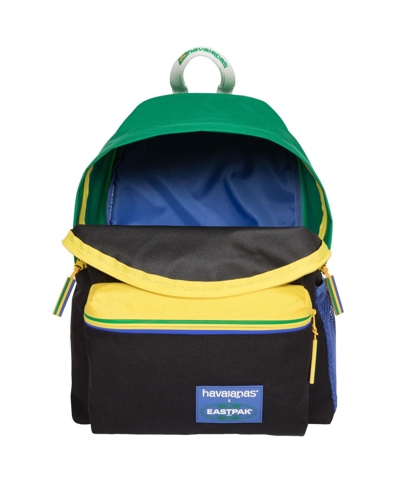 Ce sac à dos nous vient d'une collaboration très réussie entre Eastpak et l'emblématique marque de tongs Havaianas. Il est à majorité de couleur noir, avec des tons bleu jaune et vert qui rappellent les couleurs du Brésil.