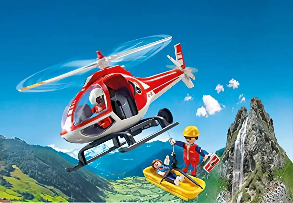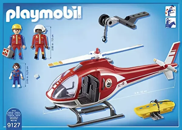 Contient 1 hélicoptère, 3 personnages,1 brancard et de nombreux accessoires