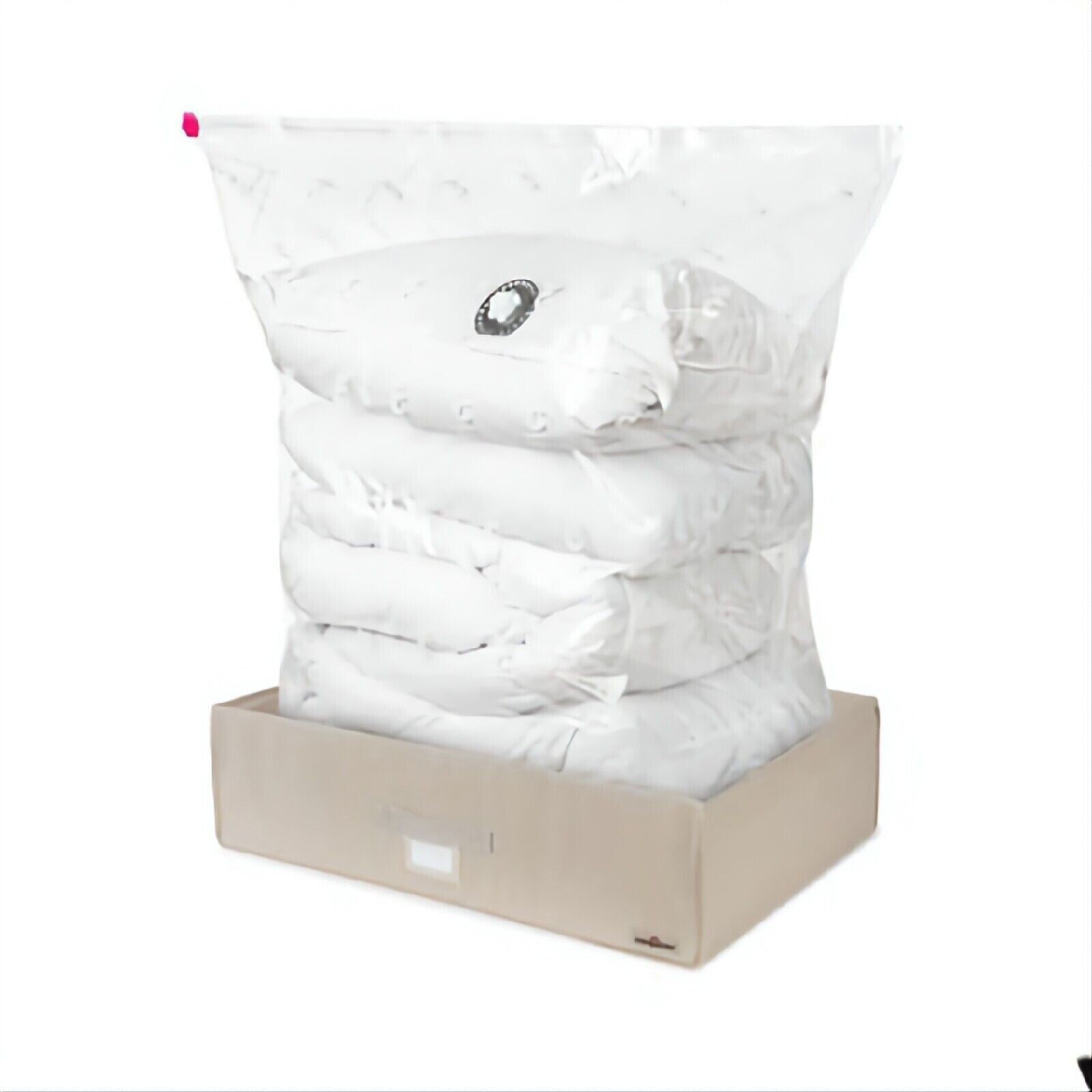 Réutilisable jusqu’à 100 foisCe coffre de rangement sous vide avec sac de compression du linge intégré vous fera gagner jusqu’à 75 % d’espace en plus dans vos armoires ! Comme par magie, d’un simple coup d’aspirateur, la technologie Compactor permet de chasser l’air contenu dans les fibres textiles. Sans être endommagés, vos vêtements et textiles volumineux se retrouvent compressés, parfaitement protégés de la poussière, des mites, des acariens et de l’humidité. Voilà la solution idéale pour libérer de la place, organiser les étagères, faire le tri à chaque changement de saison et faciliter les rangements au quotidien.