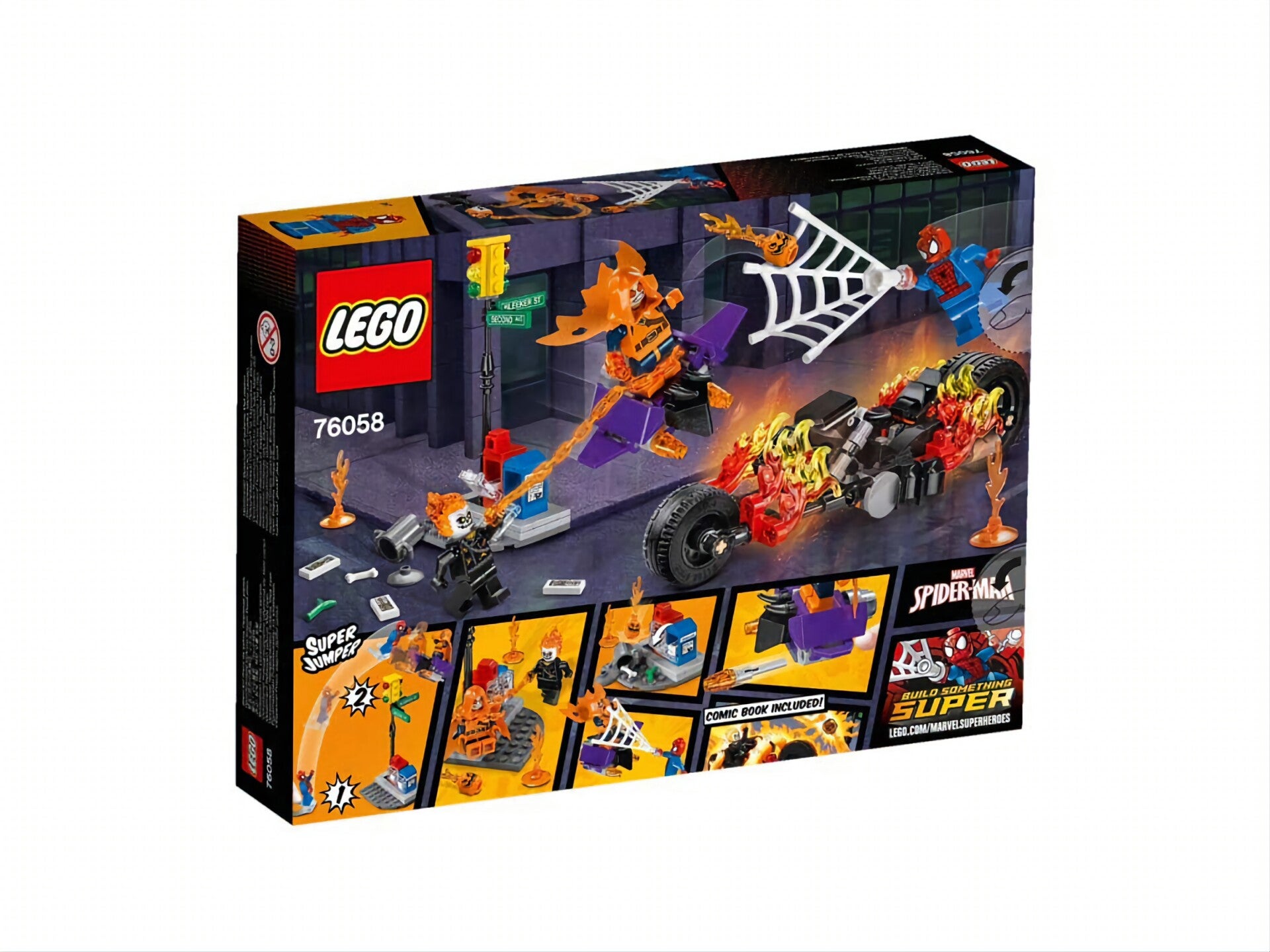 - Comprend la moto de Ghost Rider, le planeur du Super Bouffon et le feu de circulation.