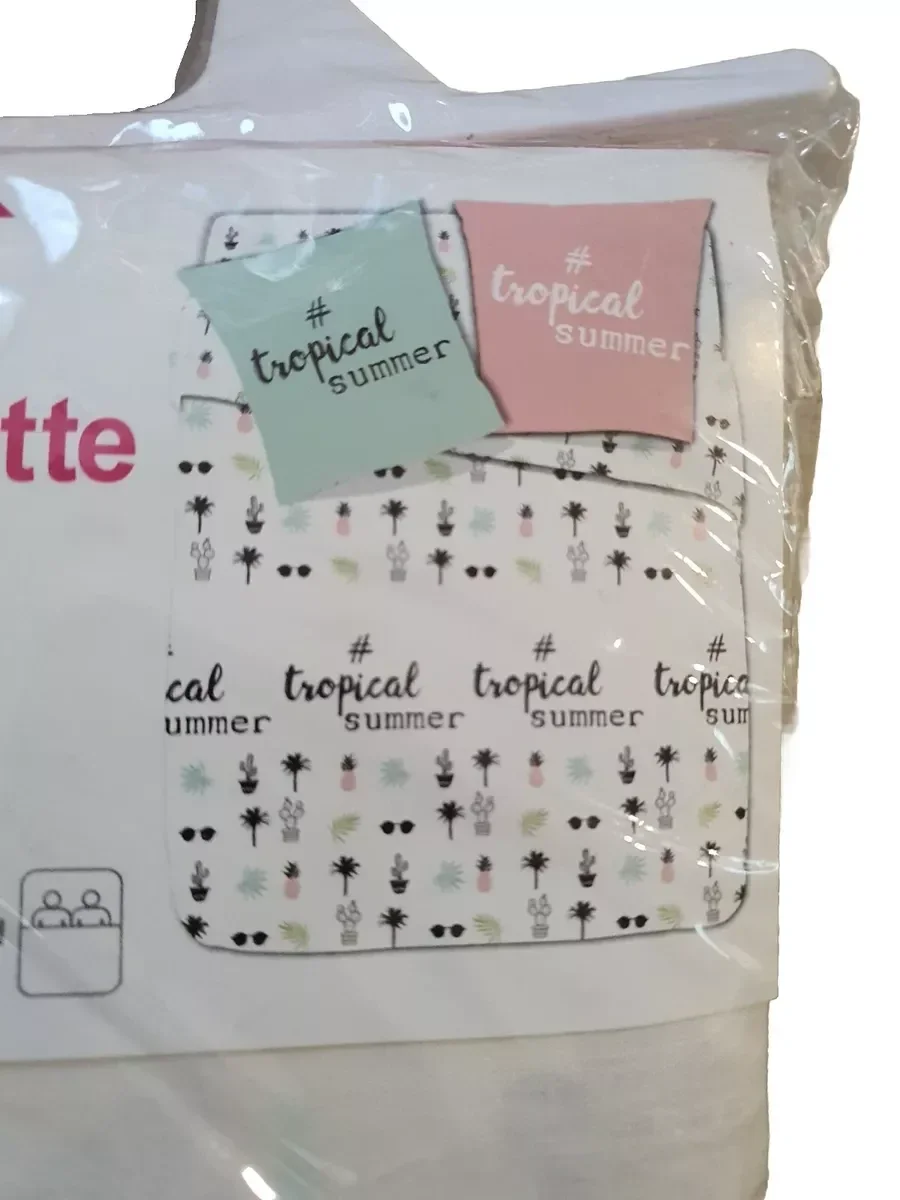 Parure Housse de couette 200x200 Cm + 2 Taies 100% Coton Tropical Summer