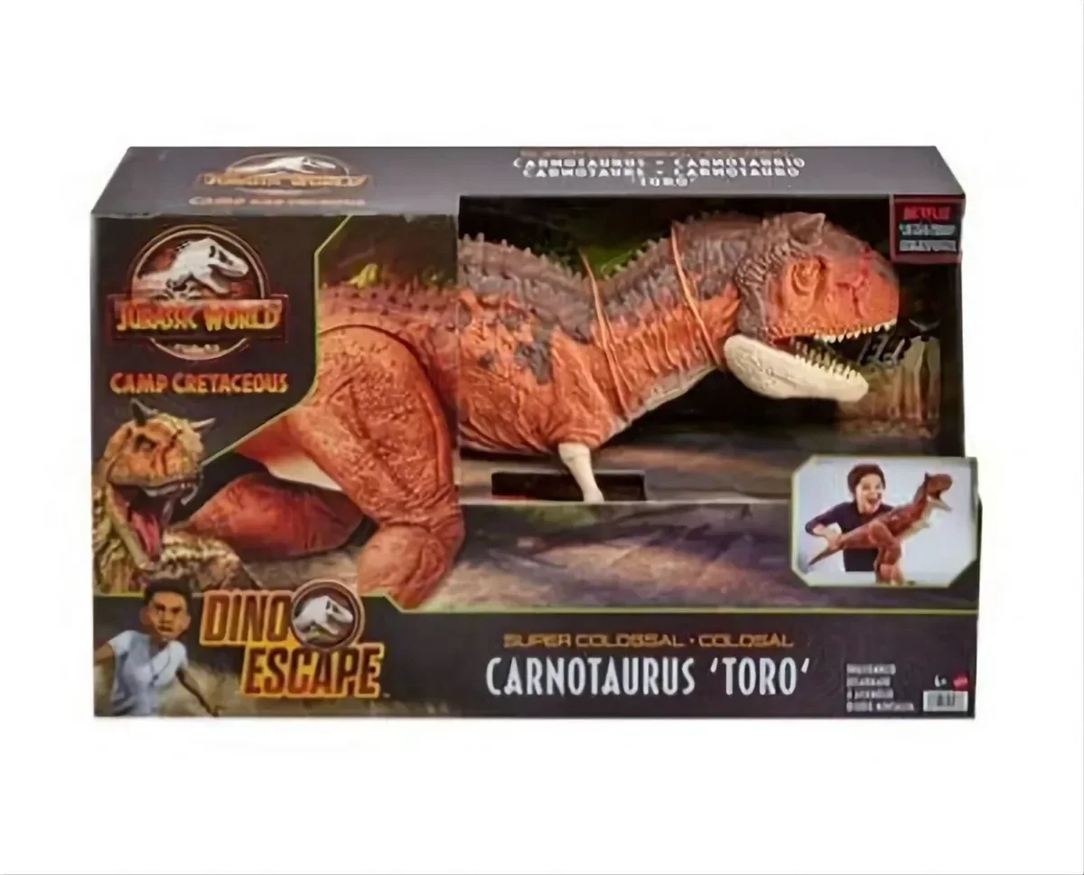 Le Carnotaurus Toro Super Colossal de Jurassic World est inspiré de la série « Jurassic World : la Colo du Crétacé ». Elle est fidèle à l'apparence du Carnotaure et mesure + 99cm.