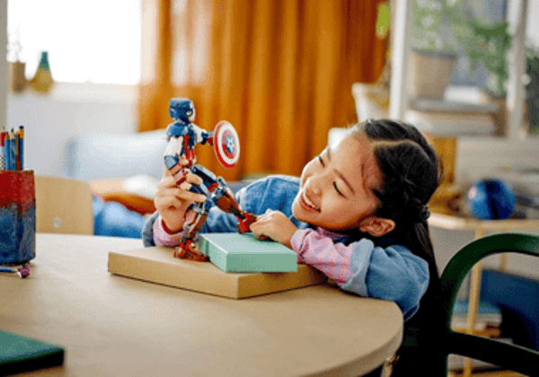 Placez le plus célèbre des super-soldats de l’univers cinématique Marvel entre les mains des jeunes super-héros de 8 ans et plus. Mesurant plus de 25 cm de haut, La figurine de Captain America LEGO® Marvel (76258) est entièrement articulée et riche en détails authentiques, pour inspirer des jeux sans fin. Figurine mythique de Marvel Amusant à construire, ce personnage Marvel Avengers à collectionner offre d’infinies possibilités de jeu et d’exposition. Les enfants peuvent articuler les épaules, les bras, les hanches et les jambes pour lancer la figurine dans des missions passionnantes. Elle présente de nombreux détails authentiques, tels que le célèbre bouclier du personnage à fixer dans sa main ou sur son dos selon les besoins de l’action. Pour ajouter une dimension numérique, les constructeurs peuvent zoomer, faire pivoter leurs sets en 3D et suivre leur progression