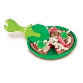 Les pizzaiolos en herbe vont créer des pizzas les unes après les autres dans leur propre pizzeria Play- Doh ! Rien de plus simple, il suffit d’utiliser le rouleau pour étaler la pâte à pizza dans le moule, de râper une tonne de fromage et d’ajouter ses garnitures préférées à l’aide des demi-moules de la pelle.